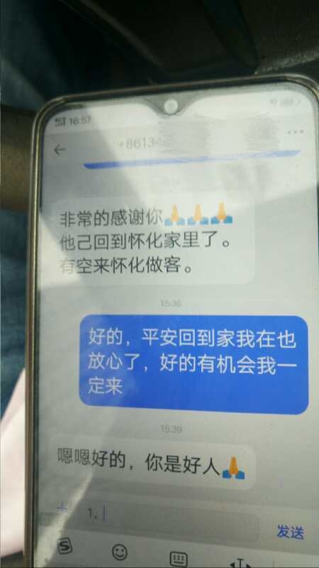 与此同时,小伙子说掉了手机和钱包,身无分文。周师傅干脆把车停在路边,联系上其家人,说明了情况。小伙子家人加了周师傅微信,并转了1000元钱,请他帮忙将小伙子送到高铁站,让他回湖南怀化。