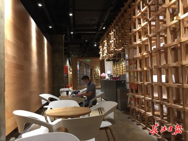一进店门,长江网记者按要求扫码、测温。工作日加下雨,店内读者不多,收银台、咖啡吧工作人员和理货员在各自岗位,已有读者坐在咖啡吧打开笔记本电脑。