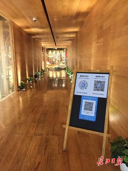 书店进门处的健康码扫码处。 记者万建辉 摄