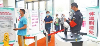 就诊流程上,武汉各大医院较疫情之前有了更严格的规定。如市中医院汉口院区,每位患者都会被要求佩戴口罩,入院人员首先通过红外线测温仪器检测,出现异常第一时间由门诊导医处工作人员引导至专门区域测量体温;武汉市第六医院则在门诊综合楼前进行严格预检分诊,需要住院治疗的患者在门诊做肺部CT、核酸检测、血液抗体、血液检查等排除后再收治入院。对于门诊、急诊需要住院治疗的重症患者,医院设有缓冲病区,短暂安置等待排除新冠肺炎感染后再转入相应病区住院。