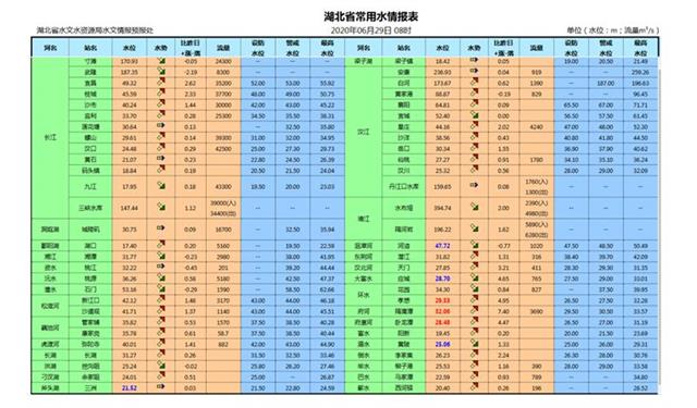 截至今日8时,长江中游干流宜昌至九江段水位全线上涨,最大涨幅2.62米(宜昌站),各站水位均在设防以下。汉江中下游干流黄家港至汉川段水位除黄家港回落0.19米外,其它各站均上涨,最大涨幅2.02米(皇庄站),各站水位均在设防以下。