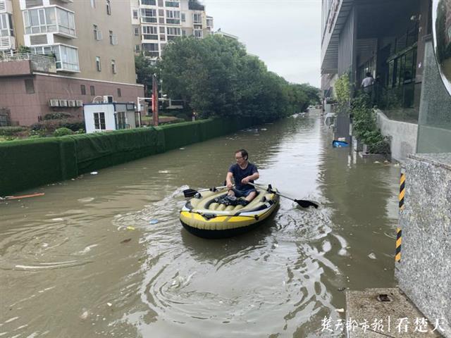 金先生告诉楚天都市报记者,他租住在附近,今天早上8点准备去上班,出门看到淹水了,想着雨停水退后再走,没想到雨一直下,后来就找到附近棋牌室老板帮忙。老板在2016年淹水时买过皮划艇,这次派上了用场。