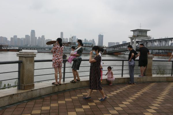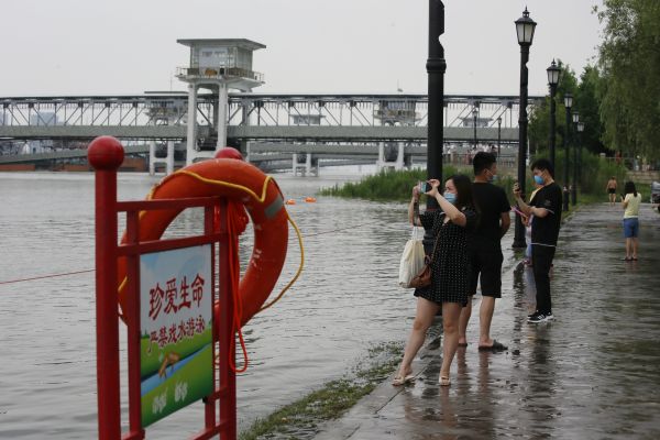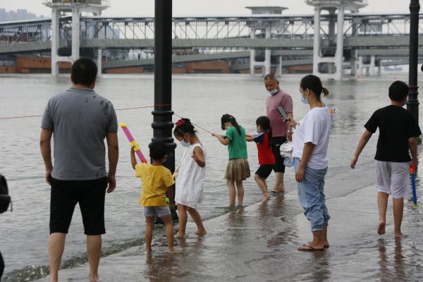 长江网6月29日讯 6月29日下午,暴雨停歇后,汉口江滩水位上涨,水面几乎与25米观景台持平,不少市民到汉口江滩看涨水情况,很多市民带着孩子在江边游玩。记者杨涛 摄影报道