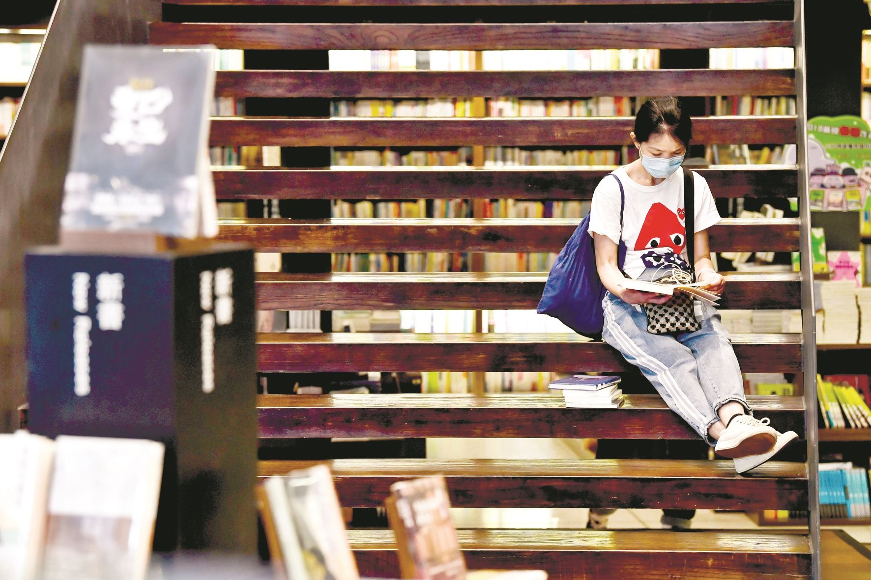 也有一些读者是第一次走进这家书店,没想到还没来得及与它“握手言欢”,就要匆匆告别。一位小伙子坐在台阶上,很认真地看一本《半小时漫画中国史》,他只是当天偶然走了进来,听说这么大一个两层楼的店面要关闭了,他感到挺惊讶。