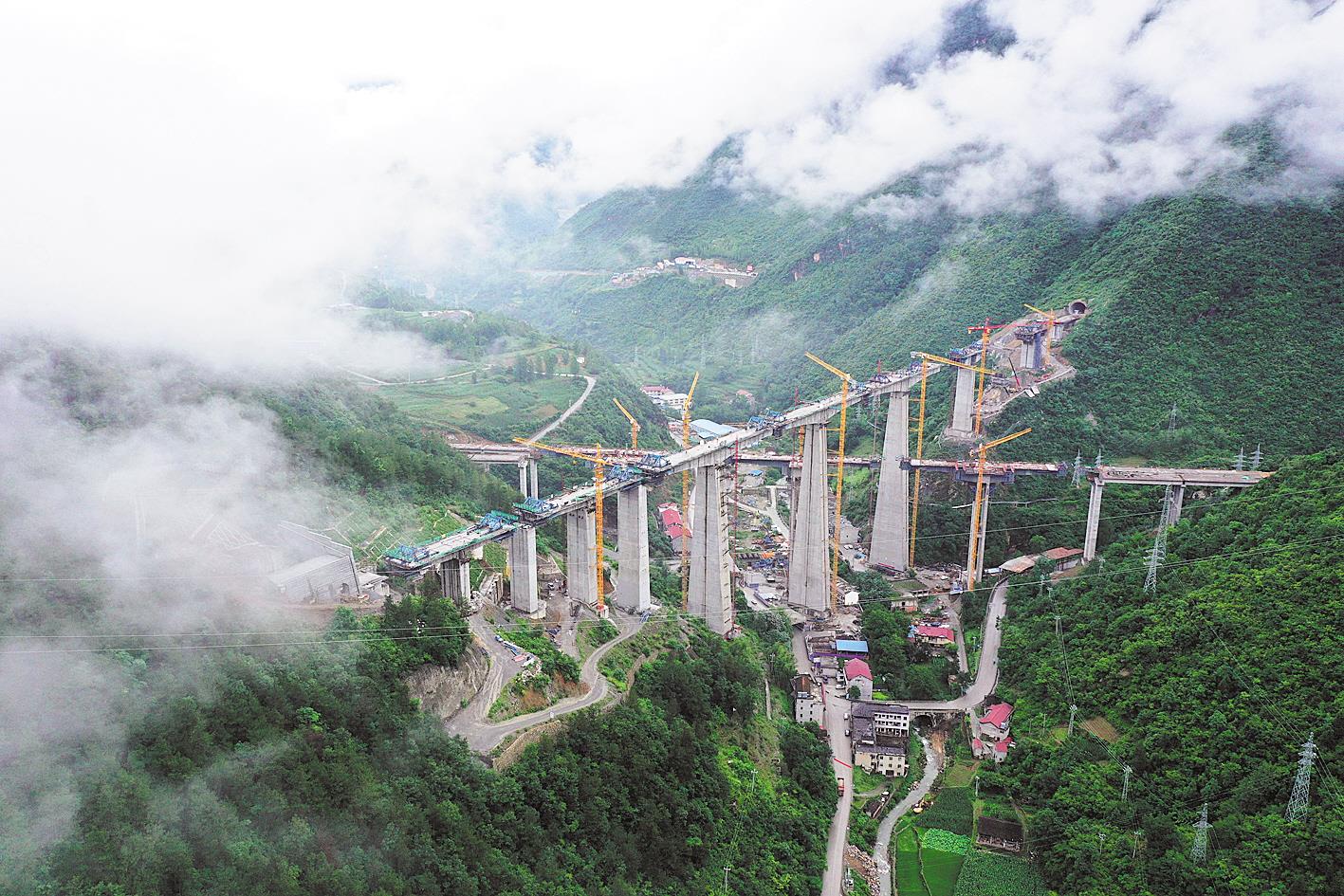 6月29日,由中铁十二局集团承建的郑万高铁(河南郑州到重庆万州)全线最高墩桥梁工程——保康县马桥镇两河口大桥主跨顺利合龙。两河口大桥是郑万高铁控制性工程之一,全长668.36米,共有桥墩12个,其中6号墩高111米,是郑万高铁全线第一高墩。郑万高铁全长818公里,设计行车速度350公里/小时,是郑渝高铁(郑州-重庆)的重要组成部分。