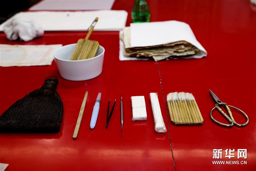 这是6月29日在上海市档案馆保护技术部拍摄的档案修复的常用工具。新华社记者 刘颖 摄
