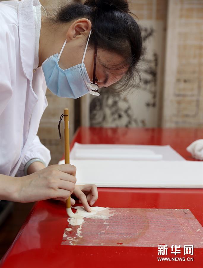 6月29日,上海市档案馆保护技术部的文献修复师孟烨在加固修复档案。新华社记者 刘颖 摄
