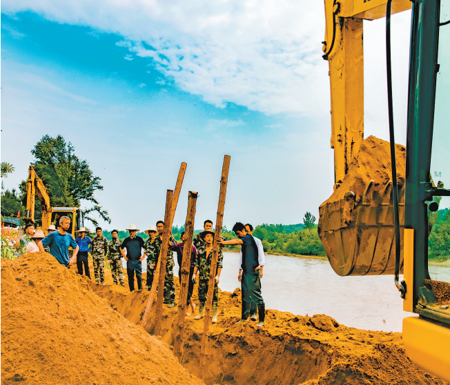 6月20日以来,罗田县匡河镇连降暴雨,该镇四口塘、沙畈河、花屋河等村受灾严重。镇党委立即组织党员干部奋战抗洪,相关村也迅速组织党员群众抢险救灾,恢复水毁河堤。通讯员 刘建文 摄