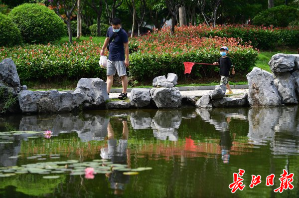 不少市民走出家门,逛公园、走绿道、赏美景。金银湖湿地公园内,荷叶田田、莲花朵朵,市民流连忘返。