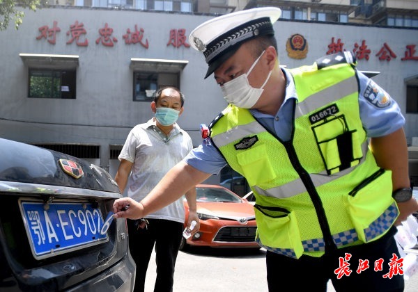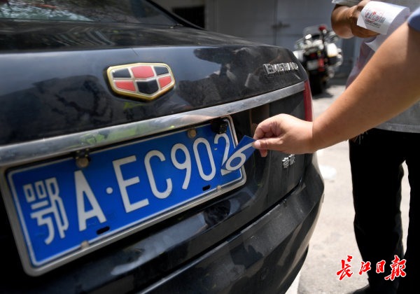 长江网6月30日讯 6月30日上午,汉阳区交通大队三中队民警接到指挥室通知,在汉阳莲花湖公园附近查获一辆伪造号牌的小汽车。驾驶员张某称,为躲避电子眼抓拍,6月初自己网购“魔术贴”,将车牌尾数2变成了6,没想到这么快就被查了。民警介绍,张某的行为属于伪造车辆号牌,将面临扣分、罚款和行政扣留等处罚。(记者史伟 通讯员李开旭 摄影报道)