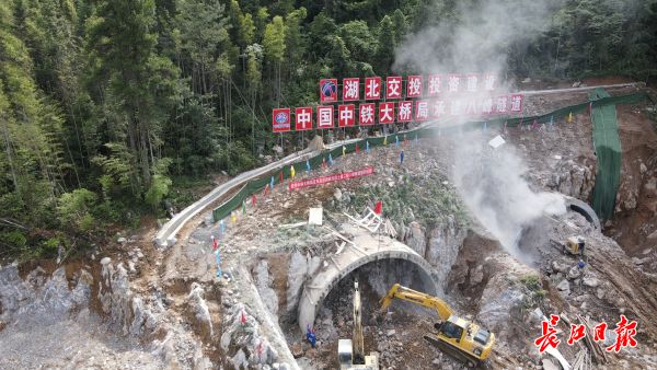 长江网6月30日讯(记者陶常宁 通讯员左钦才)6月30日,随着爆破员一声令下,洞口的石块瞬间碎掉,由湖北交投投资建设,中国中铁大桥局承建的宜来高速鹤峰东段八峰隧道出口右洞开始施工,标志着八峰隧道施工取得了实质性进展。