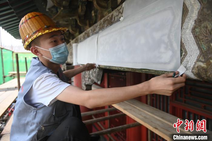 工人进行对沈阳故宫彩画进行修复。 于海洋 摄