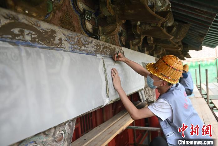 中新网沈阳6月30日电 (李晛)沈阳故宫古建筑油饰彩画近日开始进行修复保护,沈阳故宫方面30日对现场观摩记者讲述了该项工程的“秘密”所在。