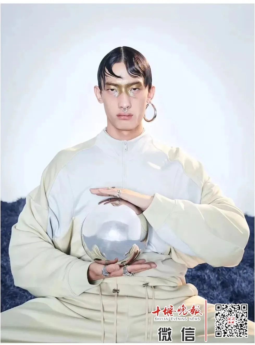 说起Versace广告的拍摄过程,余航说,为了此次广告的拍摄,需要将他的黑发漂染成酷炫的蓝色。造型由与Versace合作多年的发型师Guido Palau打造,漂染头发就花了将近一整天的时间。“第一次漂染头发,特别疼,眼泪都疼出来了,我只好死死地抓着椅背,头皮还因为过敏出现了红点。”余航说。而为了保护发色,品牌方不允许洗头,余航保持了三天的蓝发,最后洗头发的时候,洗出了一地的蓝水。
