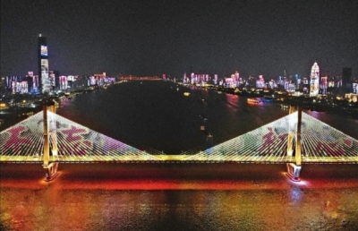 长江段的二七长江大桥至鹦鹉洲长江大桥沿线,以及汉江段的晴川桥至知音桥沿线桥梁、名胜和1000多栋楼宇建筑,变身华丽大幕,共同演绎炫目的动画,献礼建党99周年。