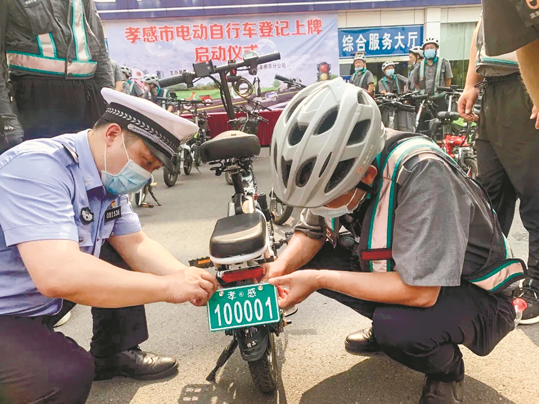 孝感市公安局交警支队车辆管理所所长周勇介绍,孝感电动自行车集中登记上牌时间为7月1日至9月30日,期间不收取任何工本费用。10月1日起,未上牌的电动自行车将不能上路行驶。对不符合新旧国家标准、不能办理牌证的在用电动自行车,交警部门将发放有效期为3年的红色临时牌照。