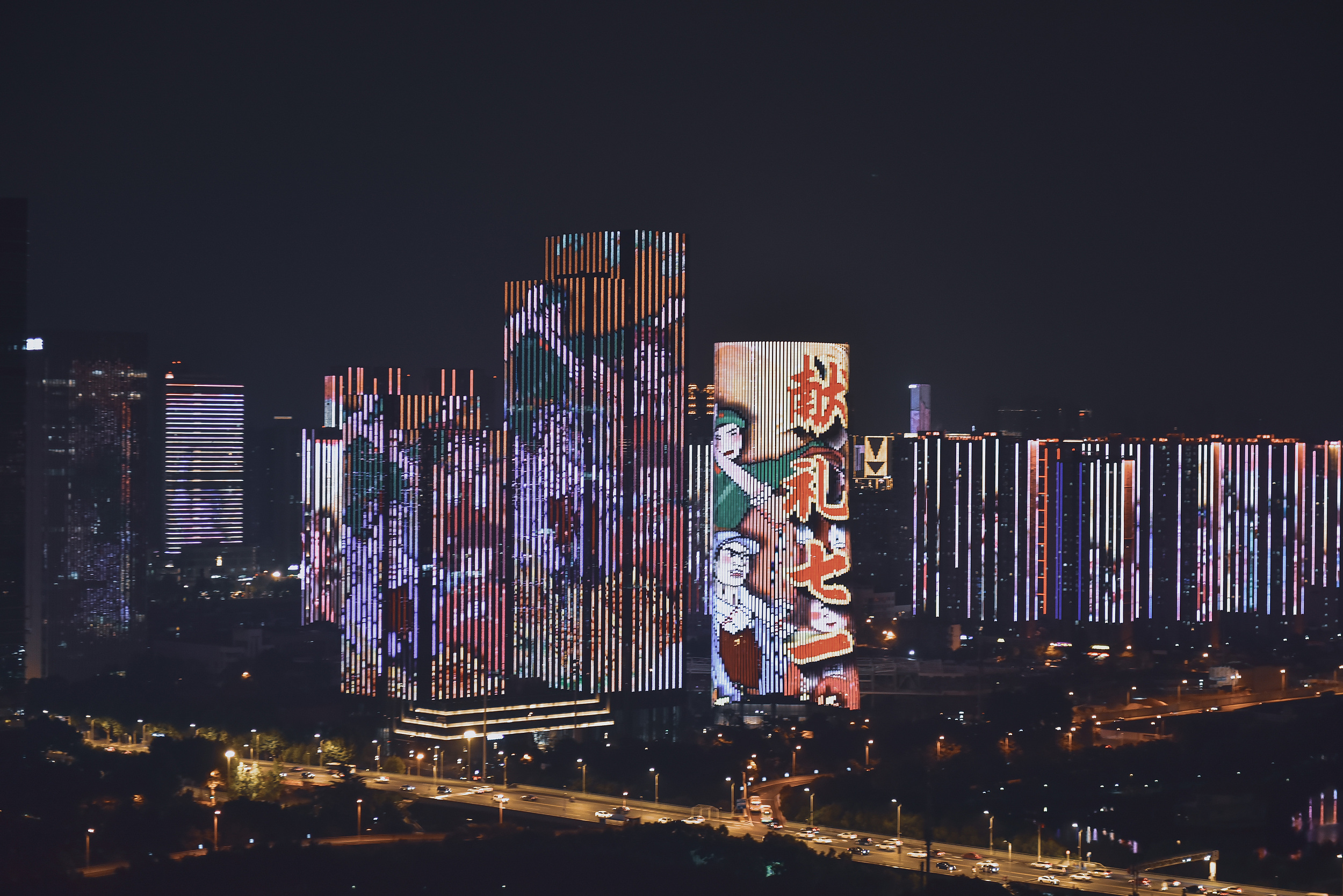 “不忘初心,牢记使命”“党建引领,学习强国”“团结是最强的免疫力 ”……这些温暖话语将一一出现在沿线高楼上。身穿传统服饰的56个民族男女也“相聚”在长江两岸楼宇之上,在花团锦簇中向党的生日献上祝福。党旗高高飘扬在两江四岸,为城市披上希望与奋进的光芒。人民视觉网/供图