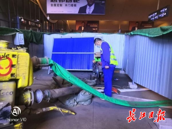 武汉火车站值守人员及抽排设备就位。市水务局供图