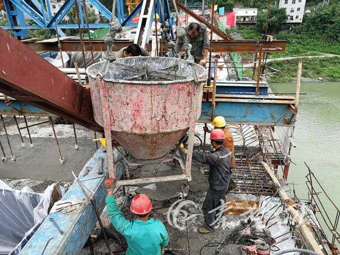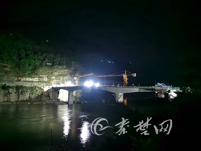 7月1日凌晨,郧西县景阳乡汉江兰滩口大桥施工现场。