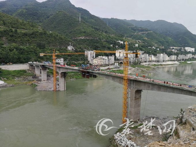 秦楚网讯 文、图 记者 张贞林 通讯员 童琳琳 汪汉体 詹勇 兰瑞坤 报道:7月1日是建党99周年的日子,汉江入鄂第一桥——郧西县景阳乡兰滩口汉江大桥建设施工现场传来喜讯,位于汉江河道中心的大桥主跨顺利合龙,这标志着兰滩口汉江大桥全桥贯通。