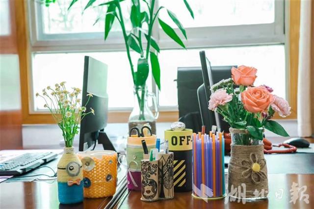 在宜昌,机关干部职工利用办公中产生的废旧物品,设计和制作实用、美观的日常办公用品和装饰品,减少垃圾总量,实现资源的循环利用。