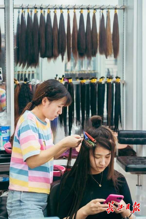 植发、接发,都是技术活儿。 记者刘帅 摄