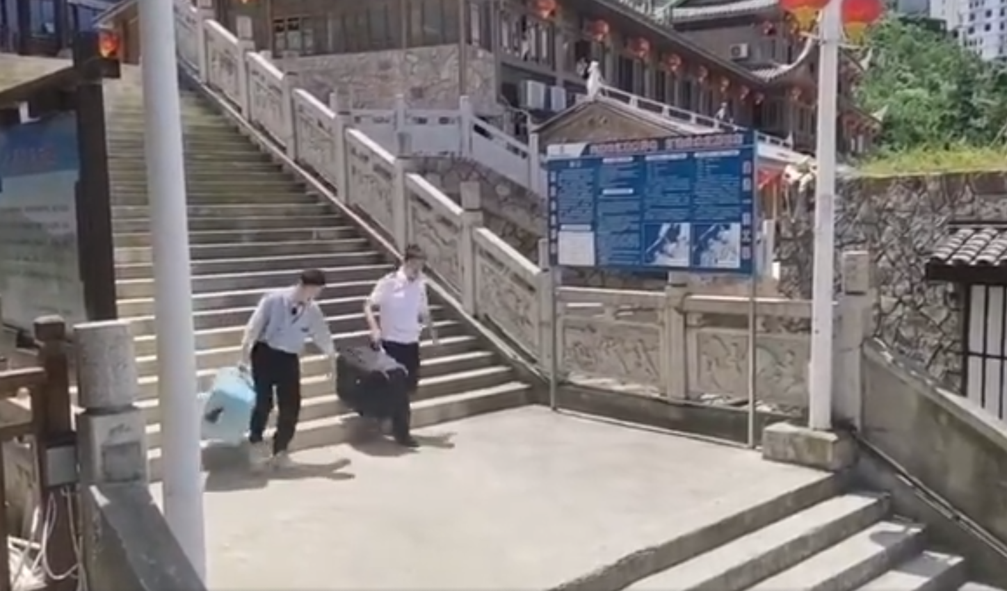 有网友用无人机航拍的形式记录下晓明哥需要徒步搬运的台阶长度