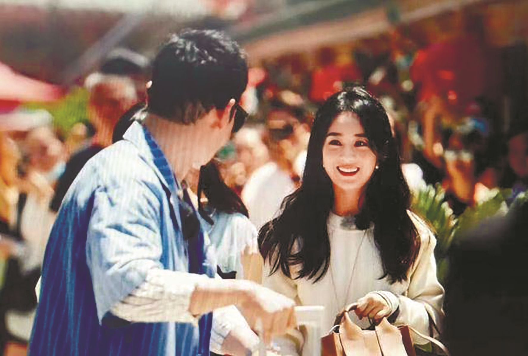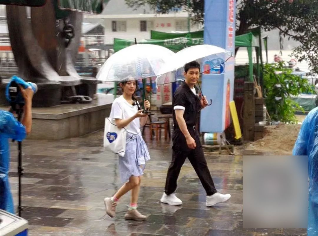 粉丝拍摄的赵丽颖与黄晓明在巴东街头