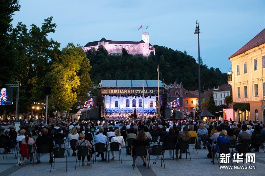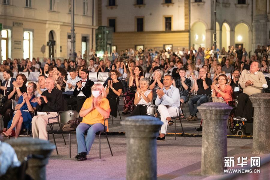 7月1日,观众在斯洛文尼亚首都卢布尔雅那观看艺术节开幕式演出。新华社记者 彭立军 摄