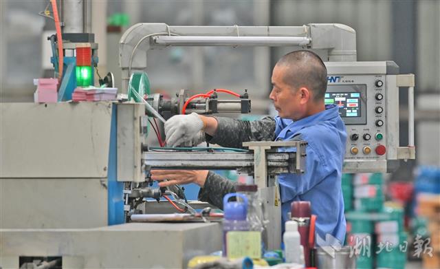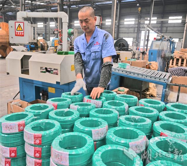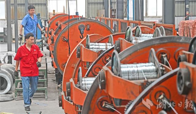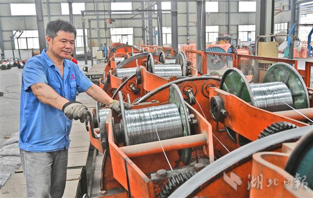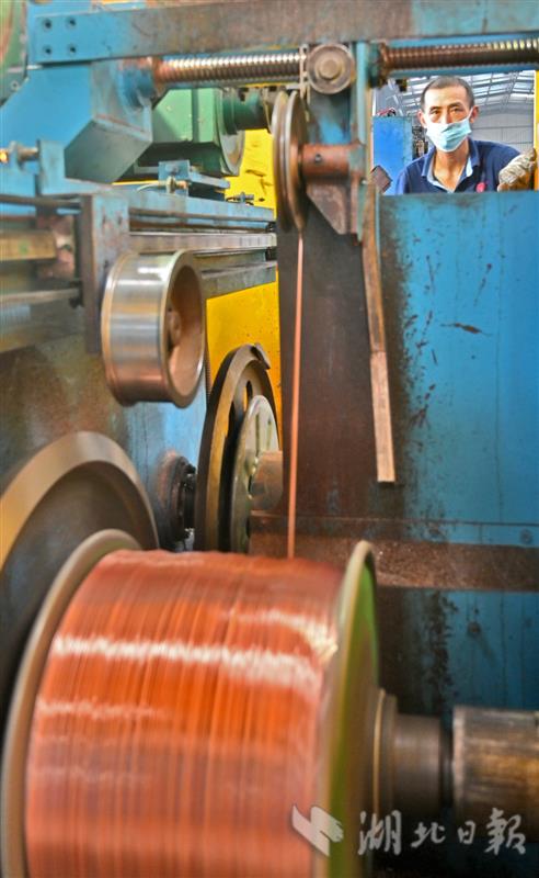 7月2日,宜昌伍家岗工业园区宜昌红旗电缆厂车间里,机器轰鸣,工人正抓紧生产被疫情耽误了两个月的订单。
