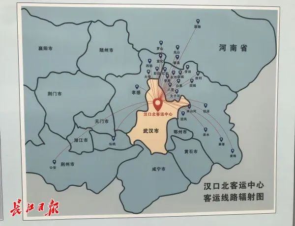 从汉口北大道地铁汉口北公交站下车,记者看到,旁边不远处就是人行天桥,步行3分钟左右,便可抵达汉口北客运中心。