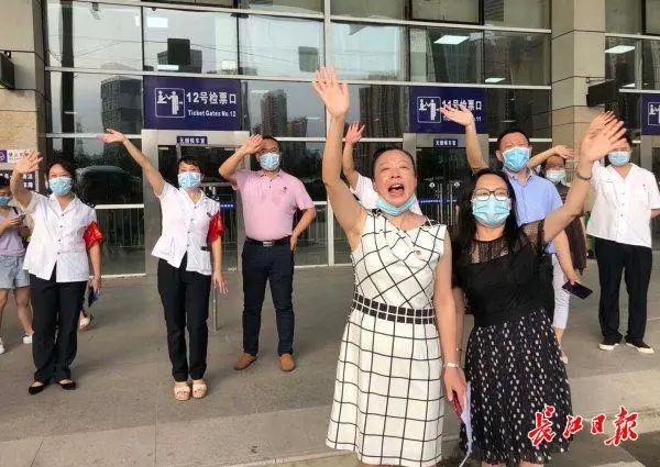 6月30日17时30分,新荣客运站发出最后一班车,工作人员在站内欢送。 记者刘斌 摄