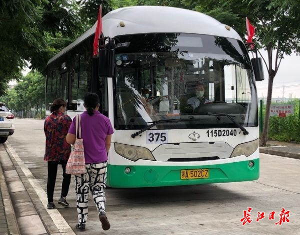 长江网记者在站牌上看到,375路公交连通城中路温馨路至二七路二七横路,共设7站。上车乘客以老年居民居多,他们大多拖着购物车、拎着购物袋,准备外出购物。