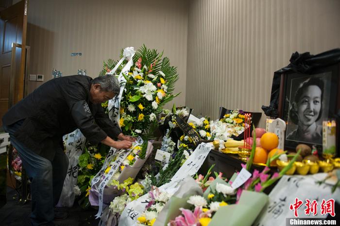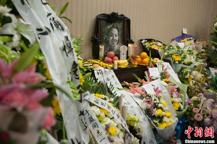 7月1日,记者在北京中日友好医院看到,小小的送别厅内摆满了花圈、挽联,于蓝的遗体静静地躺在送别厅正中。