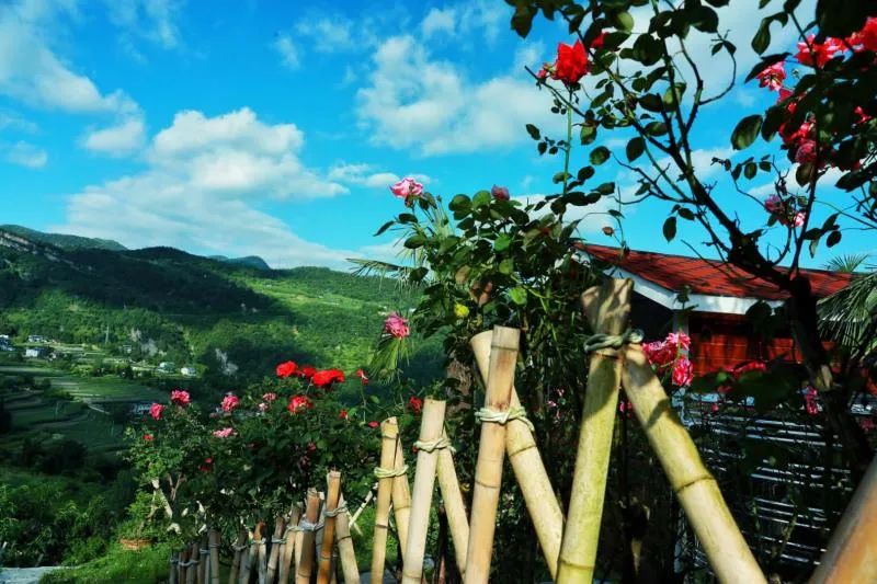 沿着瓦房石阶往上,则是郁郁葱葱的月季。廖开军介绍,每年1万多株月季怒放时,是山庄最美的季节,游客会从四面八方涌来,赏花拍照,留住最美时光。
