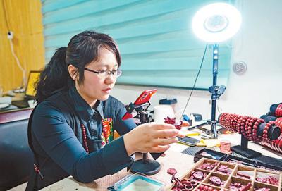 要想打开市场,还需在产品上下功夫。“大到摆件,小到戒指、手串,绝大部分都是自己设计,然后交由供货厂加工。同时提供定制服务,根据客户需求,做成他们喜欢的类型和风格,可以说每颗‘石头’都倾注了心血。”华茜说,由于前期投入大、回本慢,当地还帮助解决了15万元的免抵押贷款,缓解了创业初期的资金压力。