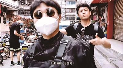 “脏辫熊”(前)录制介绍武汉文化的视频