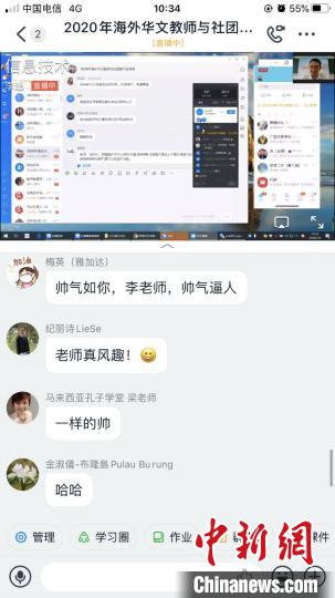 李想并不是在备课,而是现场教学,他的课程正通过网络,被1000多名远在印尼、马来西亚等东盟国家的华文教师们,利用手机或电脑聆听。在软件后台,评论互动区十分热闹,学员们边听边提问,并不时点赞……