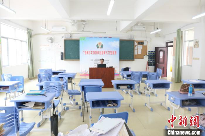 中新网南宁7月5日电 (记者 林浩)7月5日,广西华侨学校一间宽敞的教室内,课桌前没有一个学生,但讲台上,高级讲师李想却津津乐道地讲解着知识点。