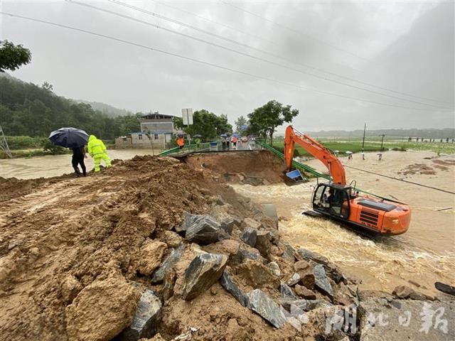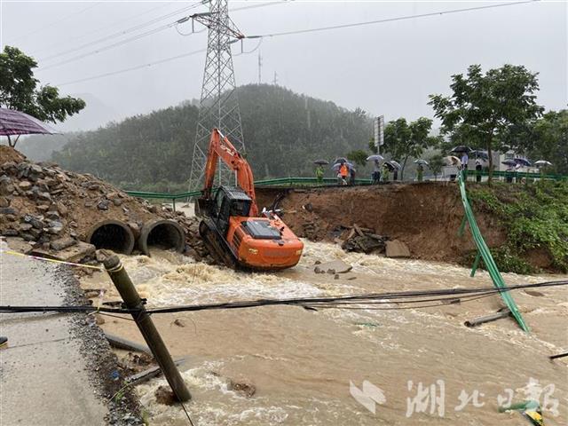 湖北日报讯(记者刘申 张竞恒 张恒伟)7月4日起,湖北罗田县遭遇连续性强降雨。6日上午6点40分,洪水致318国道罗田县段(G318K777+300m)被冲毁,交通中断。