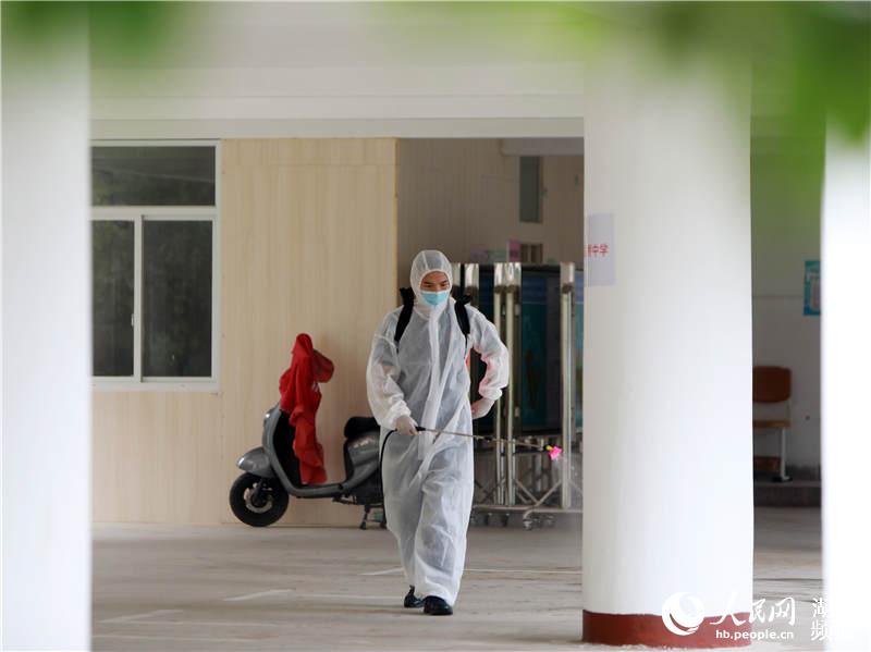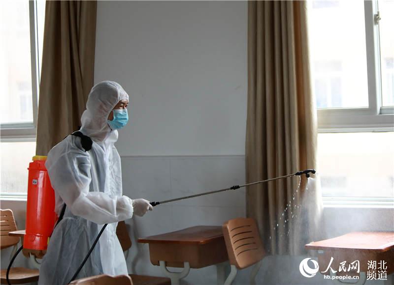人民网武汉7月6日电 7月5日,湖北省武汉市第二十三中学在校园内全面开展消杀作业。武汉市汉阳区消防救援大队的6名消防员对该校各个高考考场和公共卫生区域进行了全面系统的消杀。