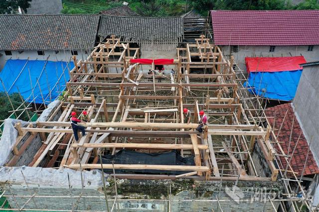 7月4日,工人在保康县店垭镇格栏坪村修缮徐家花屋古民居。