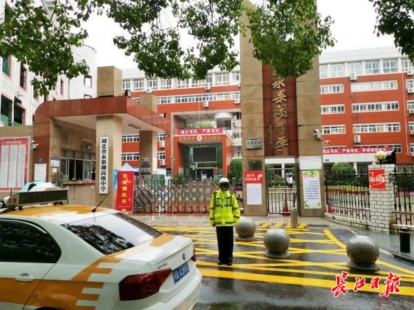 长江网7月6日讯7月6日中午,在高考考点水果湖高级中学门前,武昌区水务局排水管理站的朱师傅和罗师傅,在应急保障车上值守。从7月3日开始,水务局派出两台应急排水车辆和6名排水队员在这里驻守。在考点门前和周边道路上,武昌区交通大队派出5到6名警协人员每天驻守,维持考场周边交通秩序,其中有2名快骑队员专门处置突发情况和协助送考。现场武昌交通大队秩序中队负责人童小虎表示,高考期间,交管部门密切关注周边道路交通流量情况,尽量不封路。水果湖高中门口,城管环卫部门有专人维护考场门前道路卫生。(记者杨涛 通讯员张鹏 摄影报道)