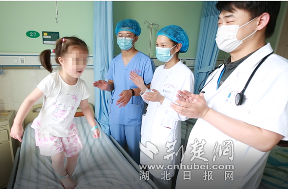 荆楚网客户端一荆楚网消息(记者黄涛 通讯员李晗)6岁女童苗苗(化名)患先天病房间隔缺损,半年前出现胸闷气喘,近日,中南医院为她免费手术补心,手术当天苗苗的母亲生下二孩,苗苗只有奶奶一人照顾,医护人员当起临时父母,对苗苗悉心护理。7月6日康复出院前,苗苗在病床上为医护人员跳舞致谢。