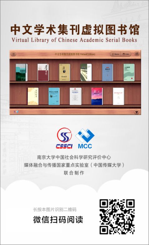 近年来,南京大学中国社会科学研究评价中心积极加强与国内媒体融合教学科研机构的合作,力求通过媒体融合技术以更广的传播范围、更及时的传播时效和更灵活的互动交流方式传播高质量学术内容,贴近学界,服务学界,彰显作为学术发展“记录者”的责任与担当。中国社会科学研究评价中心负责人认为,“中文学术集刊虚拟图书馆”是顺应学术传播方式新变化、媒体融合发展新趋势作出的探索性尝试,是CSSCI奋进新时代、实现高质量发展、服务学术研究的创新举措。相信只要有关各方协力同行,一定能构建成一个包括作者、编者、读者和出版机构在内的充满活力的数字生态共同体。(付文)