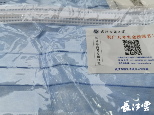 据了解,今年武汉高考报名人数较去年增加3000人,在13个区设58个考点。此次配发的20多万个专用口罩,由我校赞助,全部都是单片包装,考生每考一场就配发一个专用口罩。考生自备口罩不得进入考场,可放于物品存放处或自行处理。武汉市招考办统一配发的专用口罩,考生考试结束后可以带走。