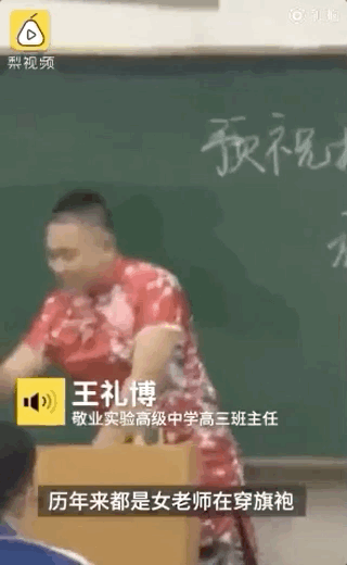 男老师穿旗袍助威高三!