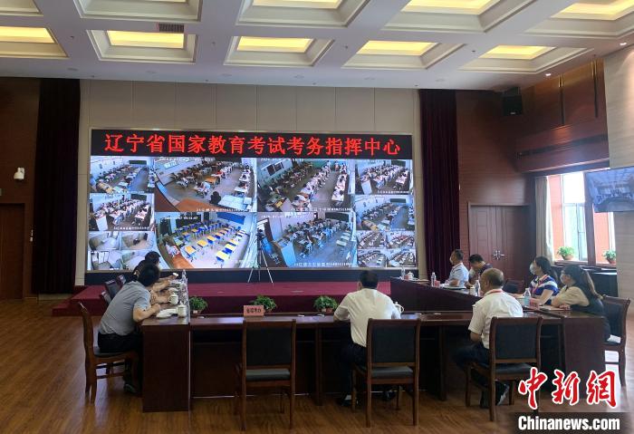 在辽宁省国家教育考试考务指挥中心,透过大屏幕可以查看各考点考试情况。 王景巍 摄