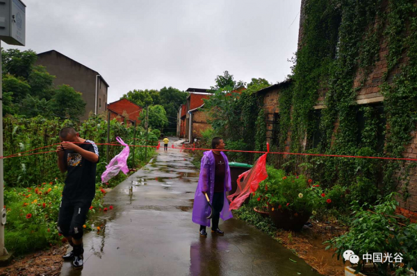 滨湖街工作人员排查危房、拉警戒线