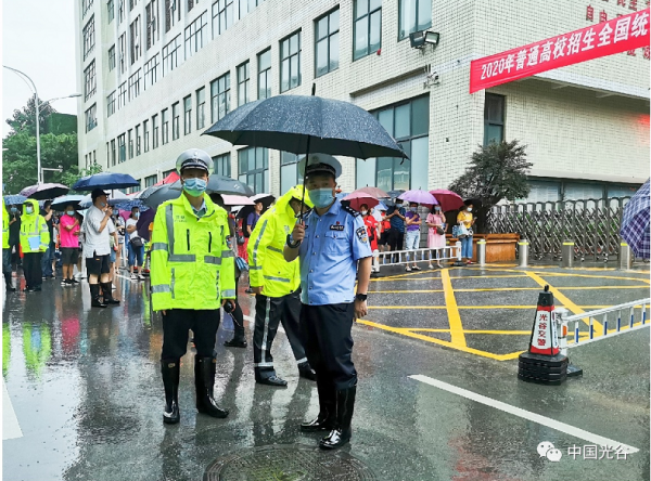 7日上午,光谷民警在高考考点执勤。